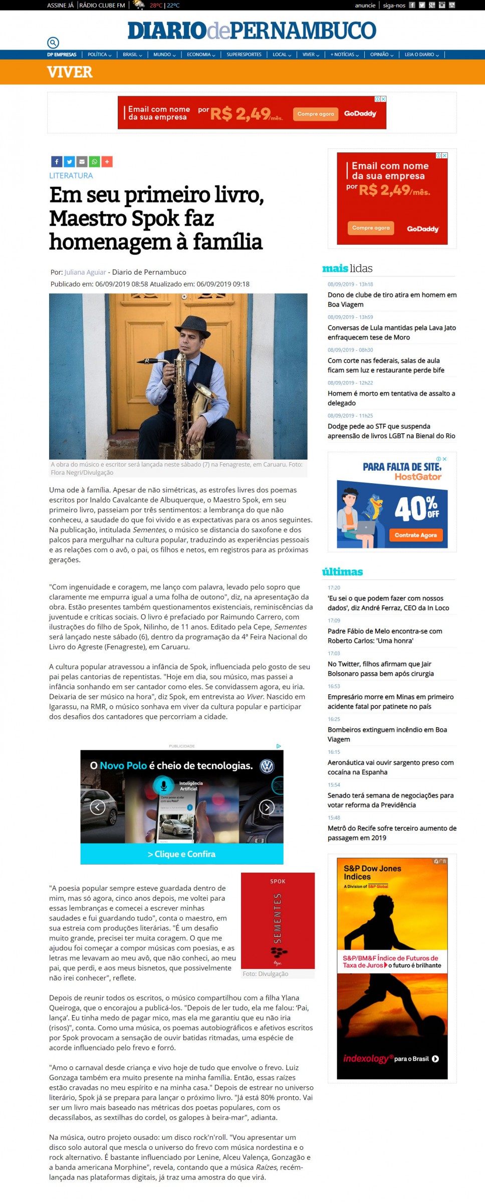 06/09/2019 Ampliar Produções Confira a matéria no site: https://www.diariodepernambuco.com.br/noticia/viver/2019/09/em-seu-primeiro-livro-maestro-spok-faz-homenagem-a-familia.html